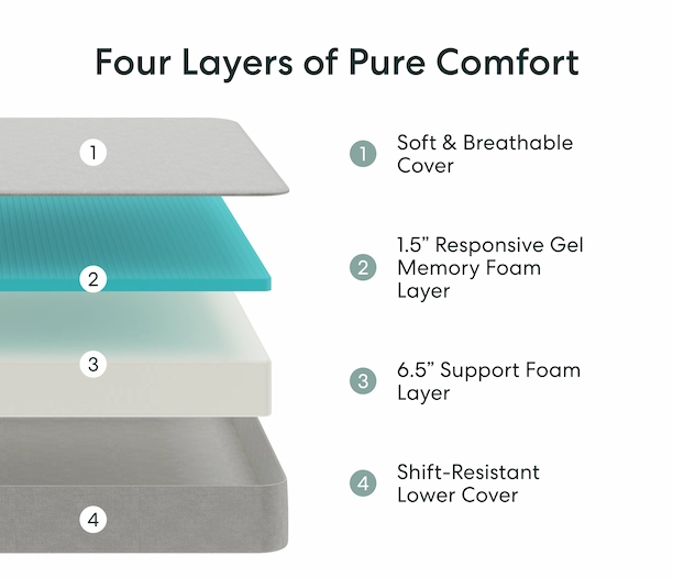 8” of high-quality foam – including 1.5” of pressure-relieving memory foam – makes sure your Siena Essential Memory Foam Mattress is just as comfortable as it is affordable. With four innovative layers, it’s your slim, everyday solution to better sleep.